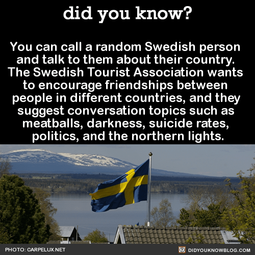 To be connected to a random Swede, call +46 771 793 336. That’s +46 771 SWEDEN. Awwwww.
